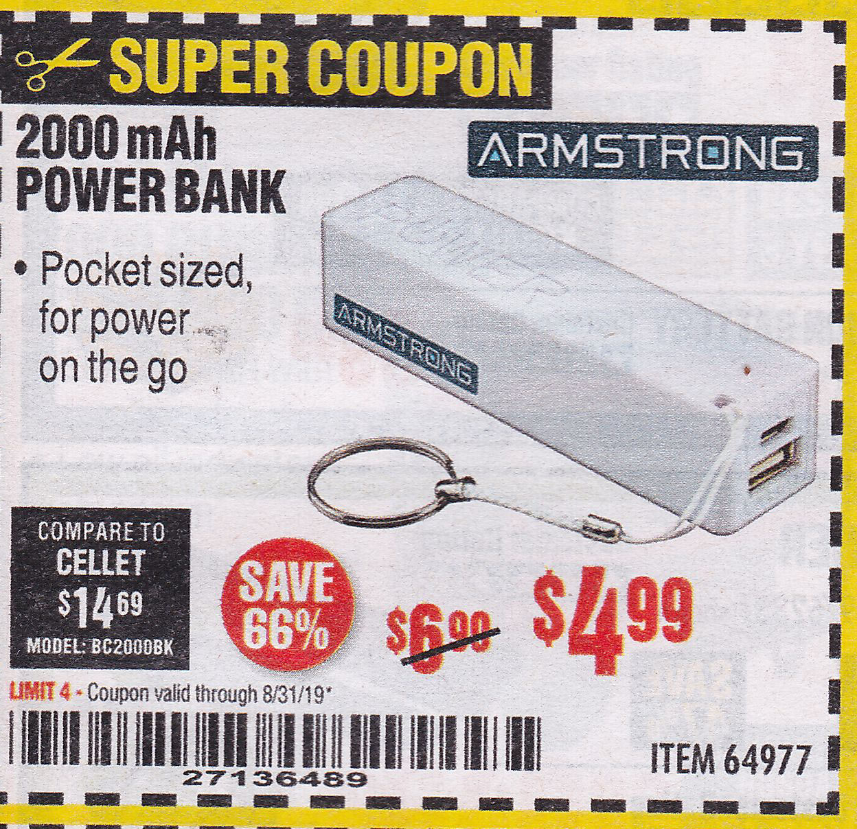 2000 MAH POWER BANK Lot No. 64977 Expired: 8/31/19 - $4.99 Coupon Code: '27136489'