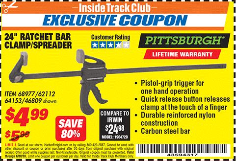 ITC 24" RATCHET BAR CLAMP/SPREADER Lot No. 68977/62112/64153/46809 Expired: 6/30/18 - $4.99 Coupon Code: '43594317'