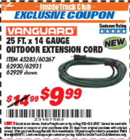 ITC 25 FT. x 14 GAUGE OUTDOOR EXTENSION CORD Lot No. 45283/60267/61862 Expired: 9/30/17 - $9.99 Coupon Code: '23167583'