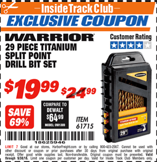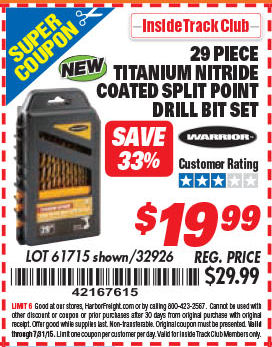 ITC 29 PIECE SPLIT POINT TITANIUM NITRIDE COATED DRILL BIT SET Lot No. 32926/61715 Expired: 5/31/15 - $19.99 Coupon Code: '21771121'