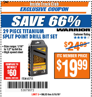 ITC 29 PIECE SPLIT POINT TITANIUM NITRIDE COATED DRILL BIT SET Lot No. 32926/61715 Expired: 5/15/18 - $19.99 Coupon Code: '53879072'