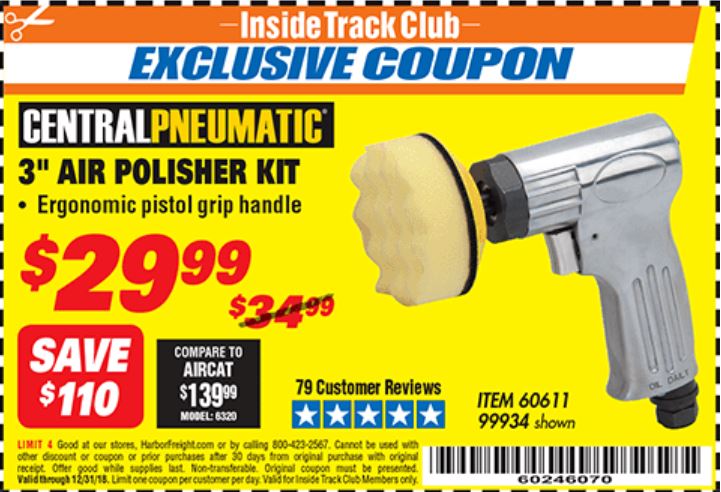 ITC 3" AIR POLISHER KIT Lot No. 60611/99934 Expired: 12/31/18 - $29.99 Coupon Code: '60246070'