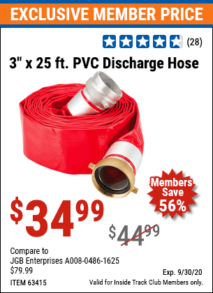 ITC 3 IN. X 25 FT. PVC DISCHARGE HOSE Lot No. 63415 Expired: 9/30/20 - $34.99 Coupon Code: '63415349'