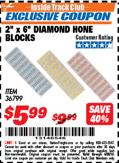 ITC 3 PIECE 2" x 6" DIAMOND HONE BLOCKS Lot No. 36799 Expired: 10/31/19 - $5.99 Coupon Code: '59129029'