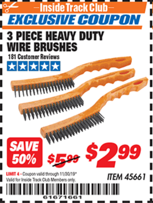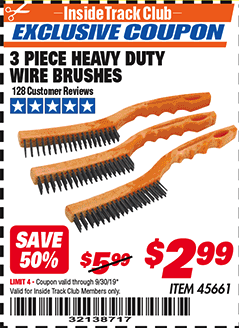 ITC 3 PIECE HEAVY DUTY WIRE BRUSHES Lot No. 45661 Expired: 9/30/20 - $3.99 Coupon Code: '45661'