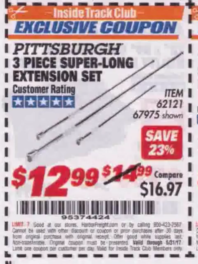 ITC 3 PIECE SUPER-LONG EXTENSION SET Lot No. 62121/67975 Expired: 8/31/17 - $12.99 Coupon Code: '60093336'