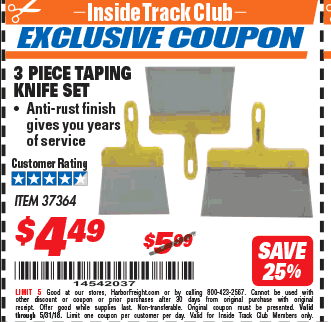 ITC 3 PIECE TAPING KNIFE SET Lot No. 37364 Expired: 5/31/18 - $4.49 Coupon Code: '14542037'