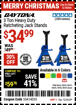 3 TON HEAVY DUTY RATCHETING JACK STANDS Lot No. 58343/58344/58345/58346/58347 Expired: 6/1/23 - $39.99 Coupon Code: '36174974'