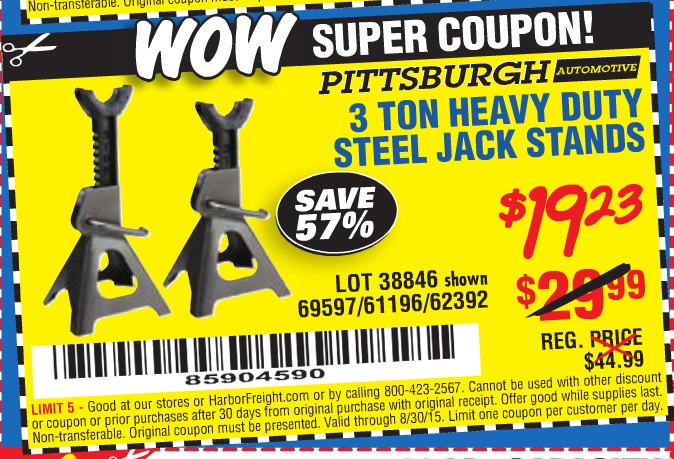 3 TON HEAVY DUTY STEEL JACK STANDS Lot No. 61196/62392/38846/69597 Expired: 5/31/17 - $17.99 Coupon Code: '83256067'