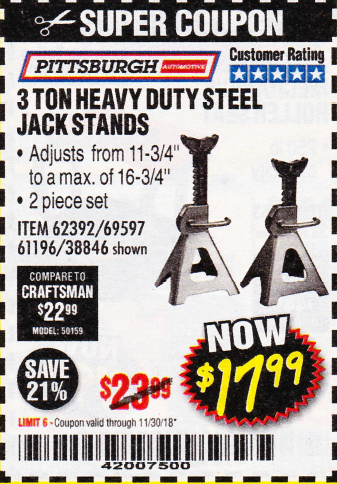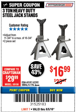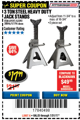 3 TON HEAVY DUTY STEEL JACK STANDS Lot No. 61196/62392/38846/69597 Expired: 2/28/18 - $17.99 Coupon Code: '31841547'