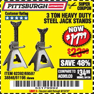 3 TON HEAVY DUTY STEEL JACK STANDS Lot No. 61196/62392/38846/69597 Expired: 9/10/18 - $17.99 Coupon Code: '53179992'