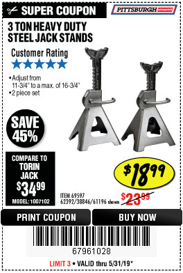 3 TON HEAVY DUTY STEEL JACK STANDS Lot No. 61196/62392/38846/69597 Expired: 5/19/19 - $18.99 Coupon Code: '61590672'