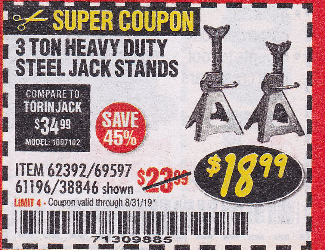 3 TON HEAVY DUTY STEEL JACK STANDS Lot No. 61196/62392/38846/69597 Expired: 3/4/19 - $18.99 Coupon Code: '58549400'