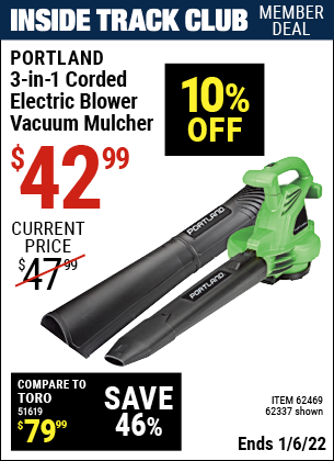ITC 3-IN-1 CORDED ELECTRIC BLOWER VACUUM MULCHER Lot No. 62337/62469 Expired: 1/6/22 - $42.99 Coupon Code: 'n/a'