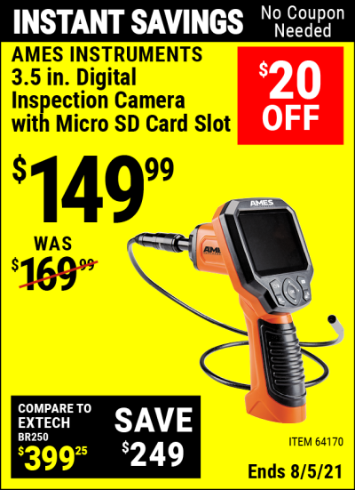 3.5" DIGITAL INSPECTION CAMERA WITH RECORDER Lot No. 64170 Expired: 8/5/21 - $149.99 Coupon Code: 'n/a'