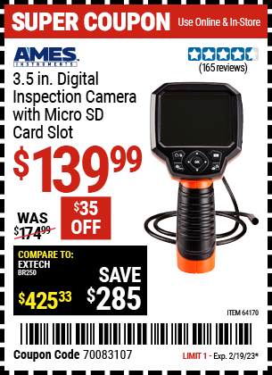3.5" DIGITAL INSPECTION CAMERA WITH RECORDER Lot No. 64170 Expired: 2/19/23 - $139.99 Coupon Code: '70083107'