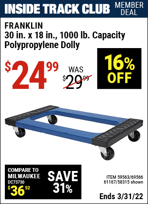 ITC 30" x 18" STEEL REINFORCED MOVER'S DOLLY Lot No. 61167/69566/93525 Expired: 3/31/22 - $24.99 Coupon Code: 'n/a'