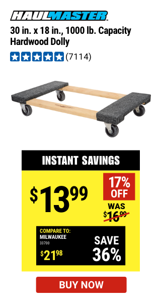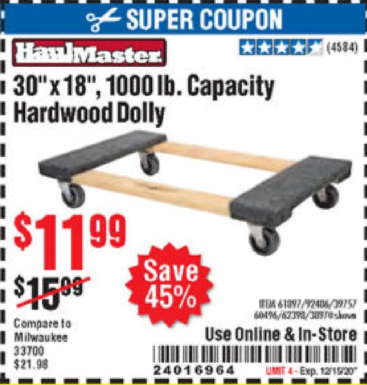 ITC 30"X18" 1000LB HARDWOOD DOLLY Lot No. 92486/39757/60496/62398/61897/38970 Expired: 10/28/21 - $13.99 Coupon Code: 'n/a'