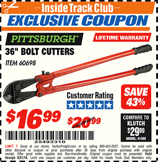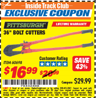 ITC 36" BOLT CUTTERS Lot No. 41150/60698 Expired: 8/31/17 - $16.99 Coupon Code: '79432408'