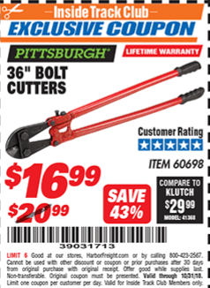 ITC 36" BOLT CUTTERS Lot No. 41150/60698 Expired: 6/30/18 - $16.99 Coupon Code: '34317916'