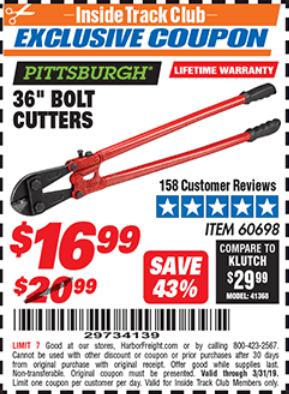 ITC 36" BOLT CUTTERS Lot No. 41150/60698 Expired: 3/31/19 - $16.99 Coupon Code: '29734139'