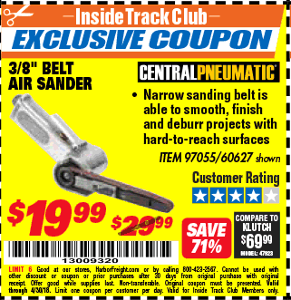 ITC 3/8" BELT AIR SANDER Lot No. 97055/60627 Expired: 4/30/18 - $19.99 Coupon Code: '13009320'