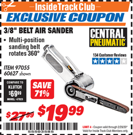 ITC 3/8" BELT AIR SANDER Lot No. 97055/60627 Expired: 2/29/20 - $19.99 Coupon Code: '55503585'