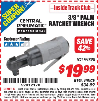 ITC 3/8" PALM RATCHET WRENCH Lot No. 99898 Expired: 2/28/15 - $19.99 Coupon Code: '52012170'