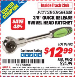 ITC 3/8" QUICK RELEASE SWIVEL HEAD RATCHET Lot No. 69782 Expired: 9/30/15 - $12.99 Coupon Code: '47872256'