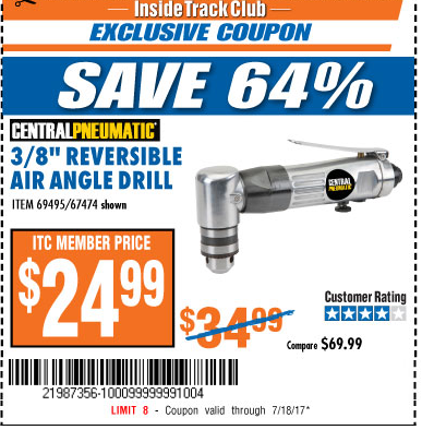 ITC 3/8" REVERSIBLE AIR ANGLE DRILL Lot No. 67474/69495 Expired: 7/18/17 - $24.99 Coupon Code: '21987356'