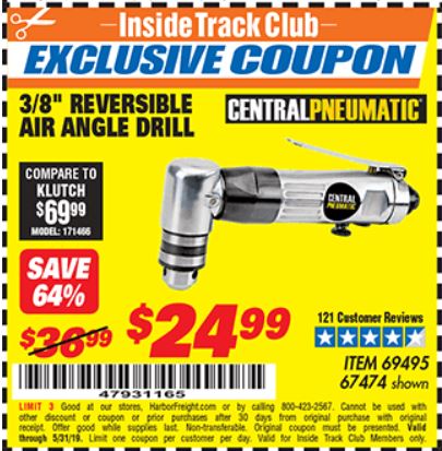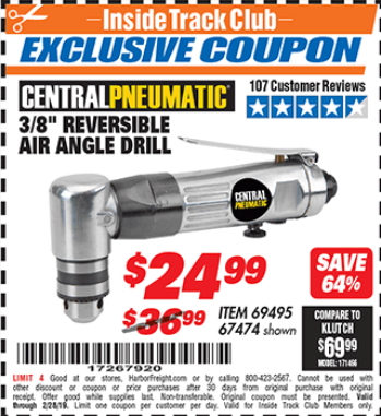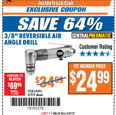 ITC 3/8" REVERSIBLE AIR ANGLE DRILL Lot No. 67474/69495 Expired: 2/28/19 - $24.99 Coupon Code: '17267920'