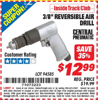 ITC 3/8" REVERSIBLE AIR DRILL Lot No. 94585 Expired: 3/31/15 - $12.99 Coupon Code: '71073223'