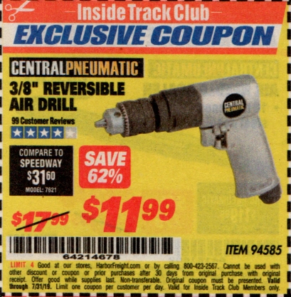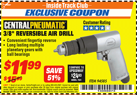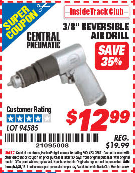 ITC 3/8" REVERSIBLE AIR DRILL Lot No. 94585 Expired: 7/31/19 - $11.99 Coupon Code: '64214678'