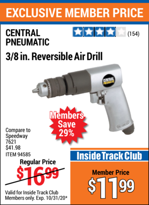 ITC 3/8" REVERSIBLE AIR DRILL Lot No. 94585 Expired: 10/31/20 - $11.99 Coupon Code: 'n/a'