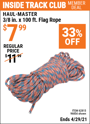 ITC 3/8" X 100 FT. FLAG ROPE Lot No. 62815/96854 Expired: 4/29/21 - $7.99 Coupon Code: 'n/a'
