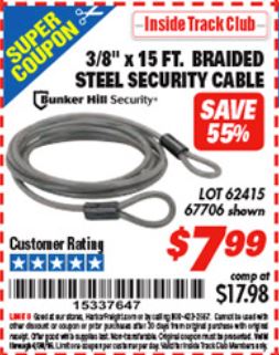ITC 3/8" X 15 FT. BRAIDED STEEL SECURITY CABLE Lot No. 62415/67706 Expired: 4/30/16 - $7.99 Coupon Code: '15337647'