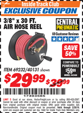 ITC 3/8" X 50 FT. AIR HOSE REEL Lot No. 40131/69232 Expired: 2/28/19 - $29.99 Coupon Code: '17493585'
