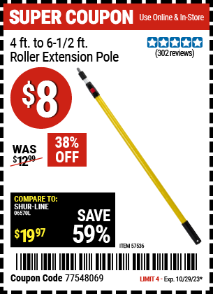 4 FT. TO 6-1/2 FT. ROLLER EXTENSION POLE Lot No. 57536 Expired: 10/24/23 - $8 Coupon Code: '77548069'