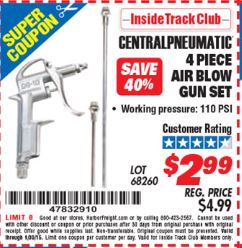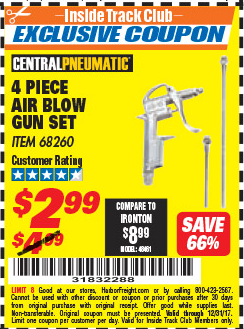 ITC 4 PIECE AIR BLOW GUN SET Lot No. 68260 Expired: 9/30/20 - $2.99 Coupon Code: '68260'