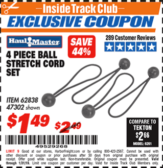 ITC 4 PIECE BALL STRETCH CORD SET Lot No. 62838/47302 Expired: 1/31/19 - $1.49 Coupon Code: '49529268'