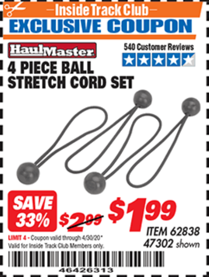 ITC 4 PIECE BALL STRETCH CORD SET Lot No. 62838/47302 Expired: 4/30/20 - $1.99 Coupon Code: '46426313'