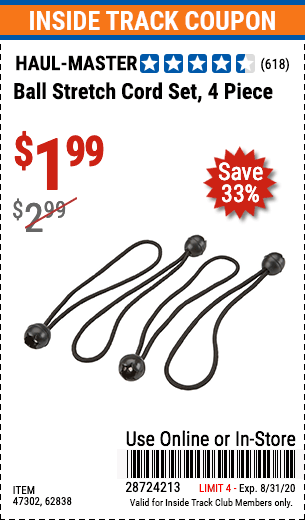 ITC 4 PIECE BALL STRETCH CORD SET Lot No. 62838/47302 Expired: 8/31/20 - $1.99 Coupon Code: '28724213'