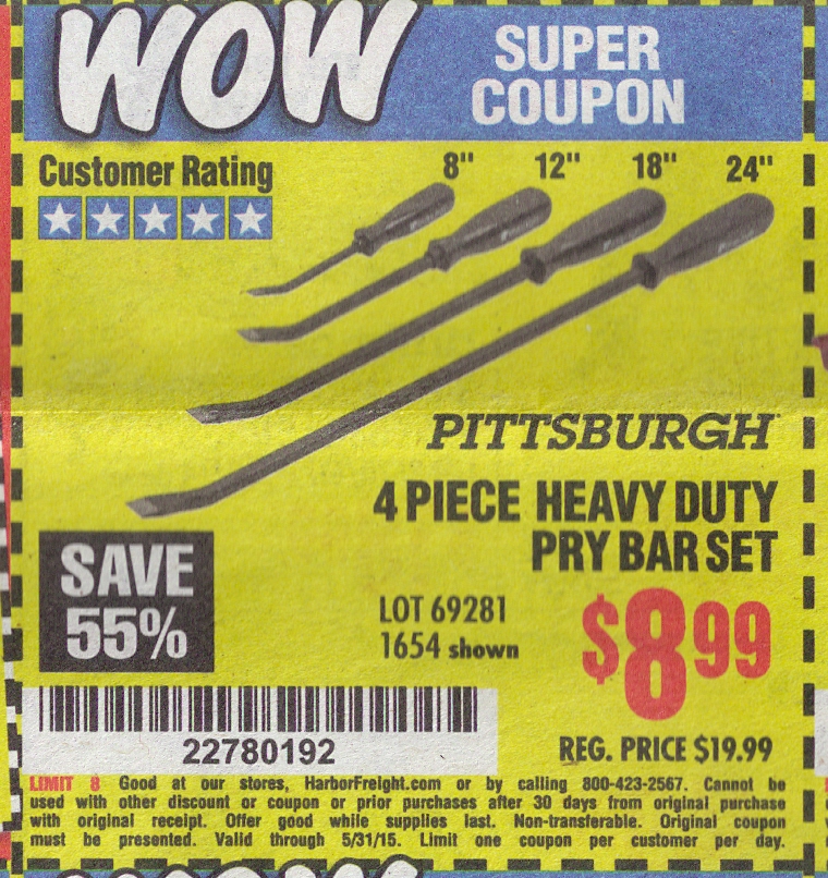4 PIECE HEAVY DUTY PRY BAR SET Lot No. 1654/69281 Expired: 3/30/15 - $8.99 Coupon Code: '11600928'
