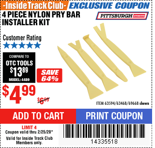 ITC 4 PIECE NYLON PRY BAR INSTALLER SET Lot No. 63468/95214/63594/69688 Expired: 2/25/20 - $4.99 Coupon Code: '14335518'