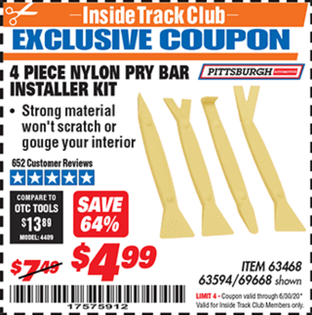 ITC 4 PIECE NYLON PRY BAR INSTALLER SET Lot No. 63468/95214/63594/69688 Expired: 6/30/20 - $4.99 Coupon Code: '17575912'