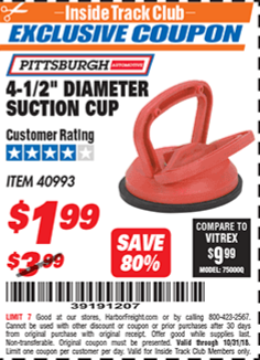 ITC 4-1/2" DIAMETER SUCTION CUP Lot No. 40993 Expired: 10/31/18 - $1.99 Coupon Code: '39191207'