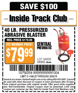 ITC 40 LB. PRESSURIZED ABRASIVE BLASTER Lot No. 34202/68992 Expired: 3/24/15 - $79.99 Coupon Code: '18756054'