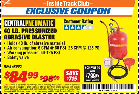 ITC 40 LB. PRESSURIZED ABRASIVE BLASTER Lot No. 34202/68992 Expired: 5/31/17 - $89.99 Coupon Code: '91875157'