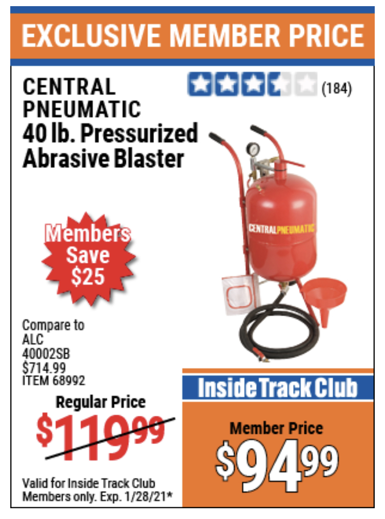 ITC 40 LB. PRESSURIZED ABRASIVE BLASTER Lot No. 34202/68992 Expired: 1/28/21 - $94.99 Coupon Code: 'n/a'