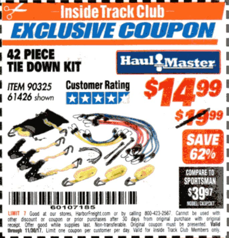 ITC 42 PIECE TIE DOWN KIT Lot No. 61426/90325 Expired: 11/30/17 - $14.99 Coupon Code: '60107185'